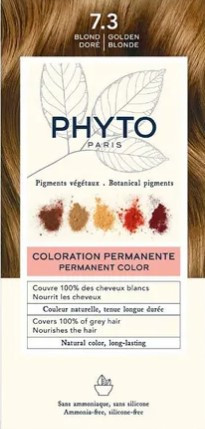 La coloration permanente de la gamme Phytocolor n°7.3 Blond Doré contient plusieurs pigments végétaux aux propriétés hydratantes, protectrices et naturellement colorantes.