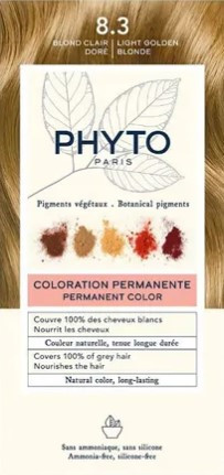 La coloration permanente de la gamme Phytocolor n°8.3 Blond Clair Doré contient plusieurs pigments végétaux aux propriétés hydratantes, protectrices et naturellement colorantes.