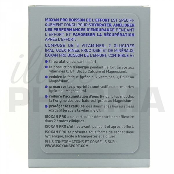 ISOXAN Sport Pro Boisson de l'effort, est une boisson de l’effort spécifiquement conçue pour assurer une hydratation continue et un apport en micronutriments et en glucides lors de la pratique sportive. Isoxan Sport Pro est composé de 5 vitamines, 2 glucides.