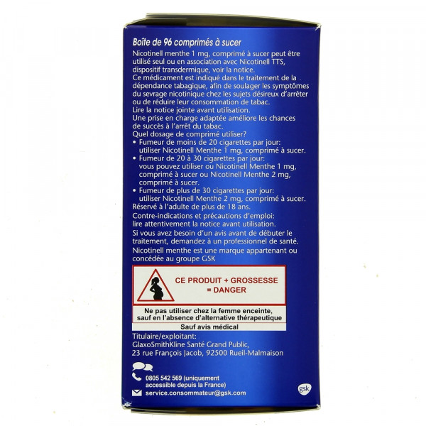 Boîte de 96 comprimés 1 mg, parfum menthe.