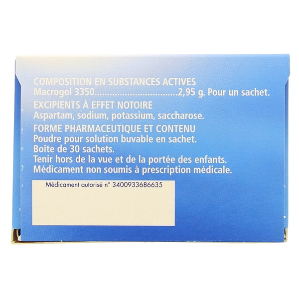 | Macrogol (polyéthylèneglycol) 3350 | 2,95 g | 5,9 g |
