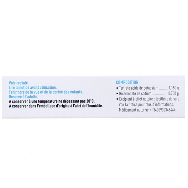 Le suppositoire doit être mis quelques minutes avant le moment choisi pour la selle. L'effet de ce laxatif peut se manifester en moins de 10 minutes.