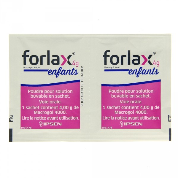 - Enfant de 1 et 4 ans : 1 sachet à 4 g par jour, en 1 prise le matin, ou 2 sachets à 4 g par jour, en 2 prises (matin et soir).