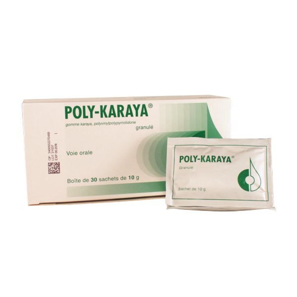 Poly-Karaya est un médicament indiqué dans le traitement symptomatique des colopathies non organiques comme les diarrhées, la constipation ou le météorisme. L'achat de Polykaraya sur notre pharmacie en ligne est possible après lecture de la notice. L'avis d'un médecin est nécessaire si vos symptômes se prolongent. Polykaraya est disponible en boîte de 30 sachets de 10g.