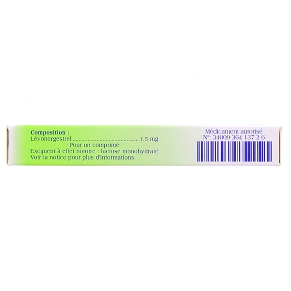 L'efficacité de ce contraceptif d'urgence peut être diminuée si vous prenez par ailleurs un médicament inducteur enzymatique tels que certains médicaments utilisés pour traiter l'épilepsie (comme les barbituriques, la primidone, la phénytoïne ou la carbamazépine), certains médicaments utilisés pour traiter la tuberculose (comme la rifampicine ou la rifabutine), certains médicaments utilisés pour traiter le VIH (comme le ritonavir ou l'éfavirenz) ou certains médicaments utilisés pour traiter les infections fongiques (comme la griséofulvine) ou un produit à base de plantes contenant du millepertuis. Si vous avez été traitée avec un de ces médicaments au cours des 4 dernières semaines, il est recommandé d'utiliser une contraception d'urgence non hormonale, à savoir la pose d'un dispositif intra-utérin au cuivre, ou d'augmenter la dose de lévonorgestrel. Demandez conseil à votre médecin ou à votre pharmacien.