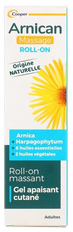 Arnican Massage Roll-on de Cooper est un roll-on massant composé d'un gel apaisant pour la peau à base d'arnica, d'harpagophytum, de 6 huiles essentielles et de 2 huiles végétales. Ce gel est destiné aux adultes.