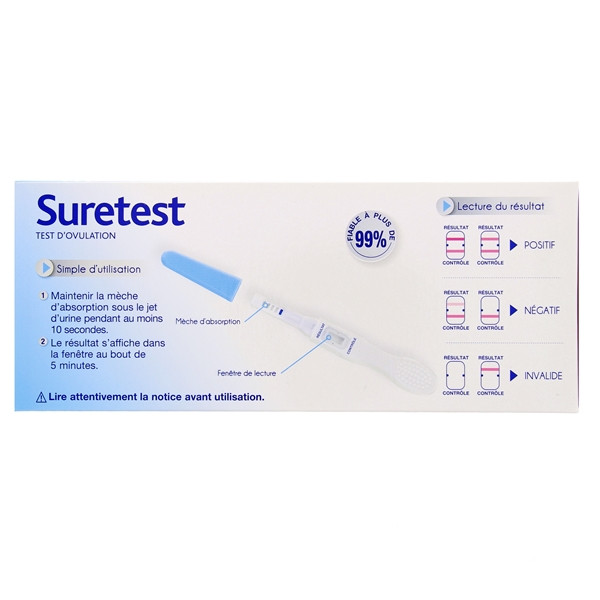 Suretest Test d'ovulation proposé par le laboratoire Cooper est un test simple d'utilisation pour identifier les 2 jours les plus fertiles de votre cycle.