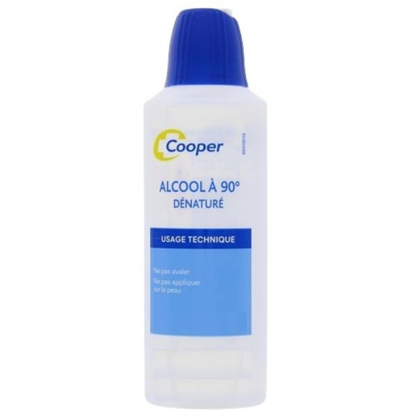 L’alcool à 90 ° Dénaturé de Cooper contient de l’alcool butylique à 4 % (V/V), de l’alcool isopropylique à 2,5 % (V/V) et de l’alcool éthylique en quantité suffisante à 90 % (V/V).