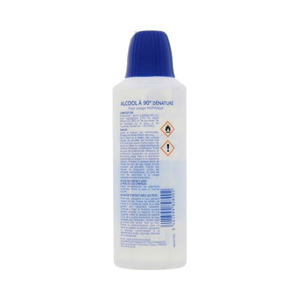 L'alcool à 90° dénaturé s'utilise pour la désinfection de matériel médical, de ciseaux ou de thermomètres. Usage technique uniquement.
