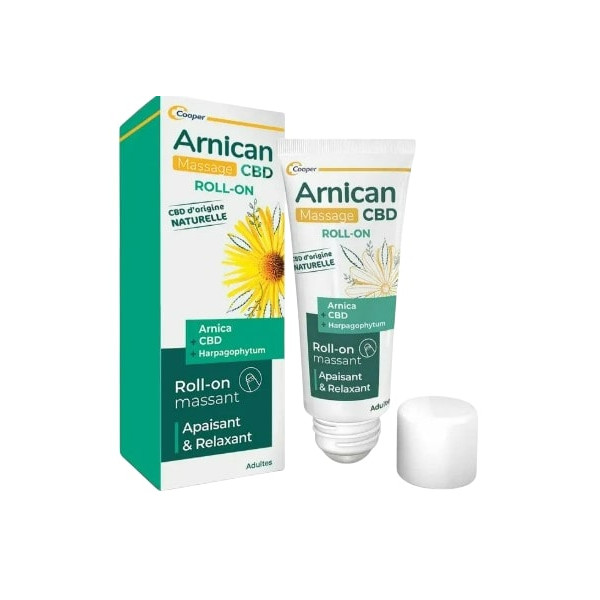 Arnican Massage CBD Roll-On du laboratoire Cooper est un roll-on massant à base d'arnica, de CBD, d'Harpagophytum, de 2 huiles végétales et de 5 huiles essentielles. Il est indiqué pour apaiser et relaxer les tensions musculaires et articulaires.