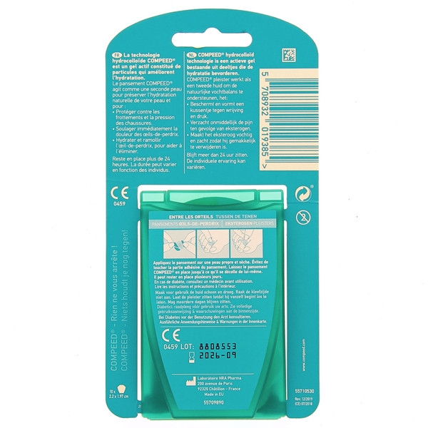 Découvrez les pansements Compeed, spécial œil-de-perdrix, du laboratoire Compeed. Proposés en boîte de 10 pansements.
