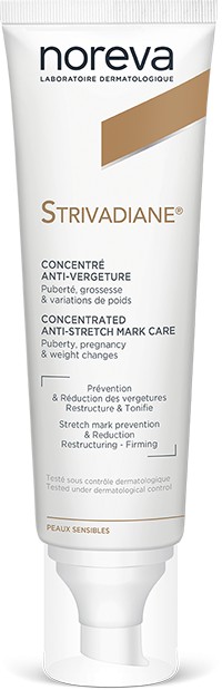 Strivadiane Concentré Anti-vergetures est le 1er soin anti-vergetures à action globale spécialement conçu pour répondre aux besoins de toutes les peaux, chez l’adolescent, l’adulte et la femme enceinte même allaitante. Strivadiane des laboratoires Noreva est disponible en tube de 125ml.
