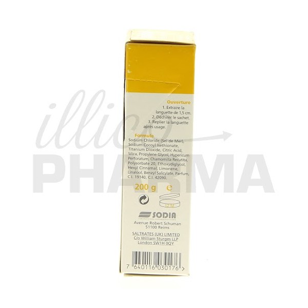 Les sels de bain traitants Saltrates sont conditionnés en boîte de 200 g.