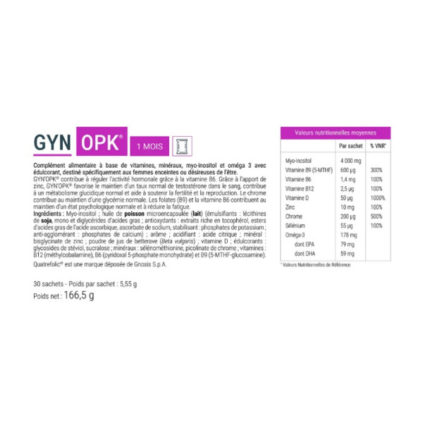 Gyn OPK Régulation Hormonale se dote d’une formule complète contenant du myo-inositol, de l’oméga 3, des vitamines, du