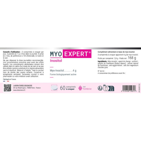 Le complément alimentaire Myo Expert de Densmore est spécialement conçu pour répondre aux besoins des femmes. Il est particulièrement destiné à celles qui souffrent de troubles liés au cycle menstruel ou à la fertilité. Ce supplément est une solution pratique et efficace pour soutenir naturellement votre santé hormonale et votre fertilité. Chaque comprimé à croquer contient une association de myo-inositol et de D -chiro-inositol qui sont deux molécules essentielles dans la régulation des cycles menstruels et dans l’équilibre hormonal.