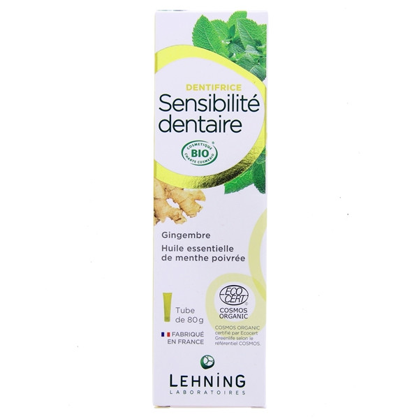 Le dentifrice Bio Sensibilité Dentaire des laboratoires Lehning est formulé à base de gingembre et d'huile essentielle de menthe poivrée pour apaiser et protéger efficacement les dents sensibles tout en apportant une fraîcheur naturelle.