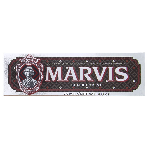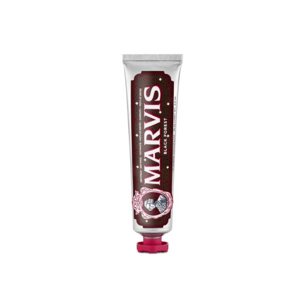 Le dentifrice Forêt Noire "Black Forest" de la marque Marvis mélange des saveurs de chocolat noir, de cerise, de massepain Amaretto et de menthe poivrée. Ce dentifrice gourmand nettoie efficacement les dents pour lutter contre les bactéries et les caries.