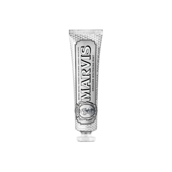 Le dentifrice Blanchissant Fumeur "Smokers Whitening Mint" de la marque Marvis, destiné aux fumeurs et aux personnes ayant des tâches, permet de nettoyer efficacement les dents pour lutter contre les caries et les taches de fumée ou de café. Avec ce dentifrice, les dents retrouveront une blancheur naturelle.