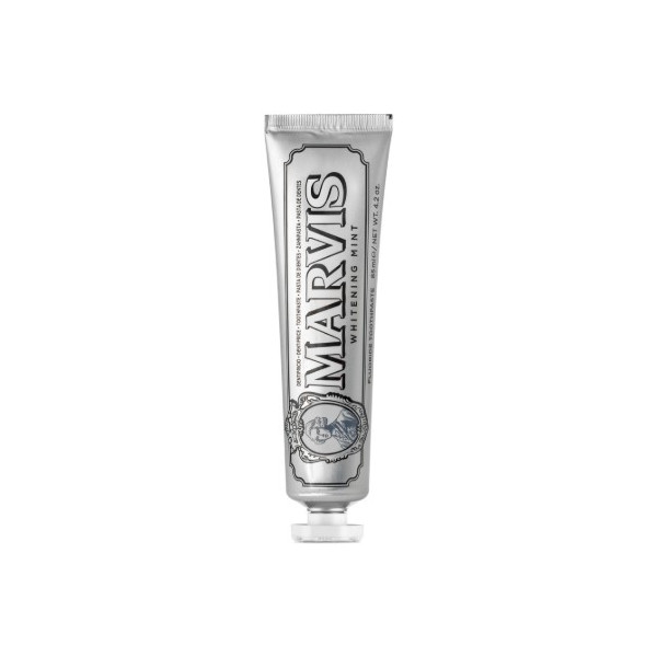 Le dentifrice Blanchissant "Whitening Mint" de la marque Marvis assure un nettoyage efficace des dents pour lutter contre la plaque dentaire et les caries tout en leur redonnant un éclat naturel.