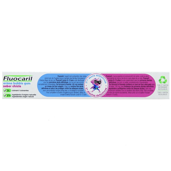 La marque Fluocaril développe le dentifrice Junior 6/13 ans Bubble Gum, adapté pour les enfants de 6 à 13 ans. Disponible en lot de 2 tubes de 75 ml chacun.