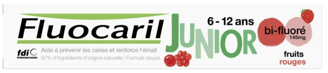 Le dentifrice Junior 6/12 ans aux Fruits Rouges de la marque Fluocaril est spécialement adapté pour les enfants de 6 à 12 ans. Il protège des caries dentaires et respecte la fragilité des dents des enfants.