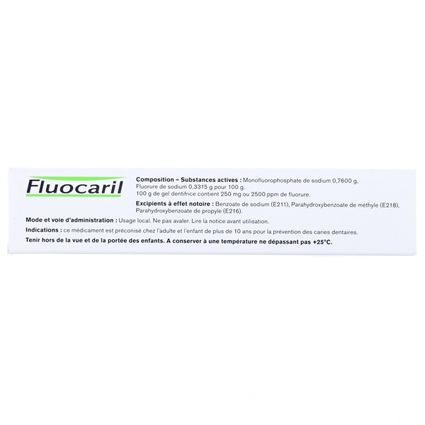 Le dentifrice Bi-fluoré 250 mg en gel de Fluocaril est un médicament non soumis à la prescription médicale. Il est indiqué dans la prévention des caries.