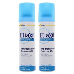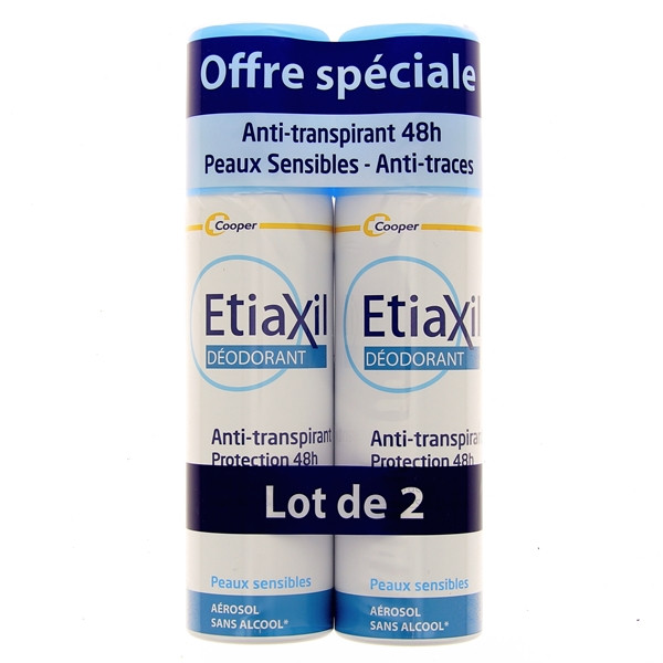 L’aérosol ETIAXIL déodorant a une action déodorante et anti-transpirante pendant 48 h. Il prévient l’apparition de traces jaunes et blanches sur les textiles et respecte les peaux sensibles. Sa formule testée sous contrôle dermatologique est sans alcool et sans paraben.