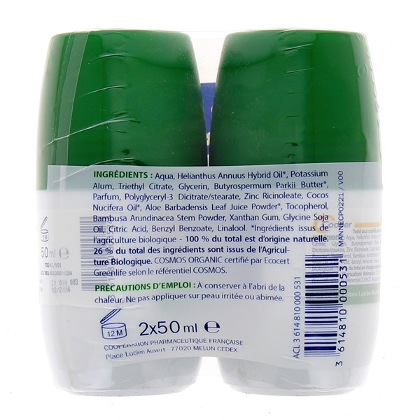 Le principal atout du Déodorant Anti-Transpirant Végétal 48 h Roll-On Bio Lot de 2 x 50 ml est son efficacité. Les résultats peuvent être constatés deux jours après la première application. Non seulement il se débarrasse de l’humidité, mais il élimine aussi les mauvaises odeurs. Ajoutée à cela, cette solution est formulée à base de produits biologiques. Autrement dit, tous ses ingrédients sont d’origine naturelle.