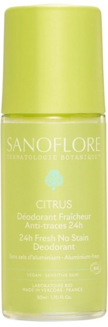 Fabriqué en France et testé sous contrôle dermatologique, ce déodorant Fraîcheur Citrus 24 h Sanoflore convient à toute la famille dès 10 ans.