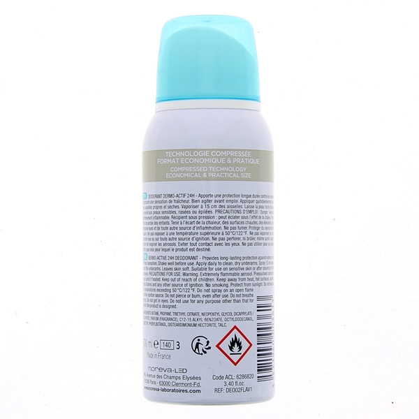 Le déodorant spray Dermo-actif fait partie de la gamme Deoliane de la marque Noreva. Formulée sans alcool et sans sels d’aluminium, cette gamme est spécialement conçue pour les personnes ayant une peau sensible et peut être utilisée après un rasage ou une épilation.