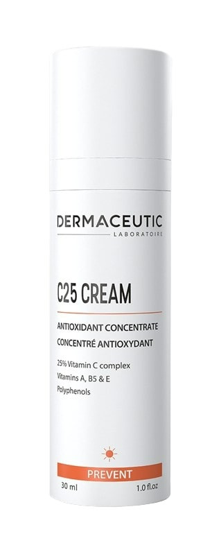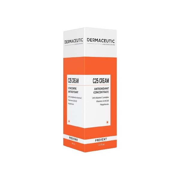 C25 CREAM du laboratoire Dermaceutic est une crème de jour antioxydante fortement recommandée contre le vieillissement cutané précoce. Elle convient à tous les types de peaux, néanmoins elle est idéale pour un teint terne, une peau irrégulière, une peau avec des rides ou ridules.