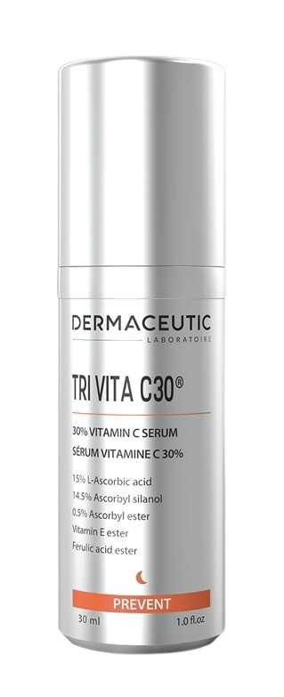 Tri Vita C30 Sérum Vitamine C 30ml Dermaceutic est indiqué pour prévenir le vieillissement cutané, améliorer la fermeté et l’élasticité de la peau tout en homogénéisant le teint. Il est conseillé d’appliquer le Sérum Vitamine C Dermaceutic le soir sur le visage et le cou. L’idéal est d’utiliser le Tri Vita C30 Dermaceutic en cure de 3 mois.