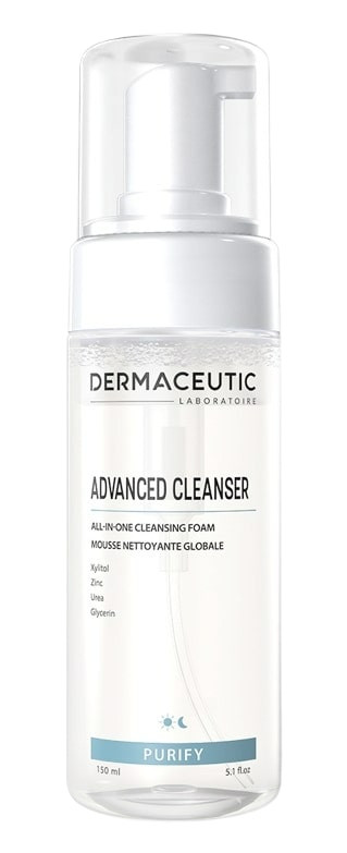 Advanced Cleanser — Dermaceutic est un soin nettoyant destiné à un usage quotidien. Cette mousse micro-aérée s’avère particulièrement efficace pour le démaquillage. Elle supprime l’excès de sébum, hydrate l’épiderme et procure à la peau une sensation de fraîcheur, de pureté et de propreté.