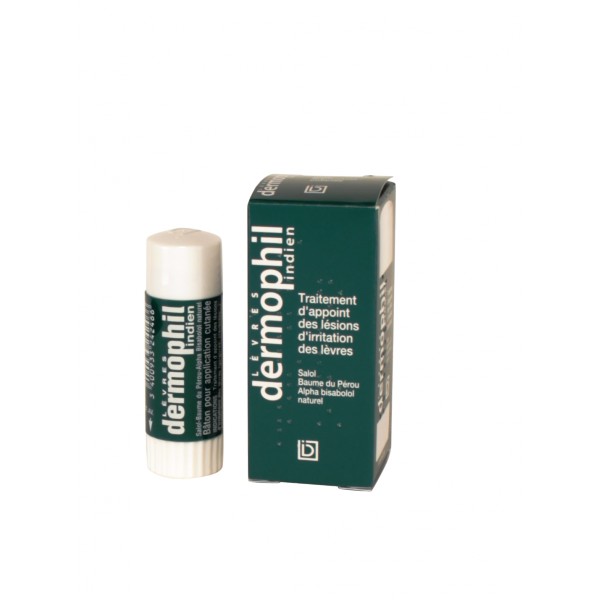 Le stick à lèvres Dermophil est indiqué en cas de lésions des lèvres. Il est disponible en tube de 3,5 grammes.