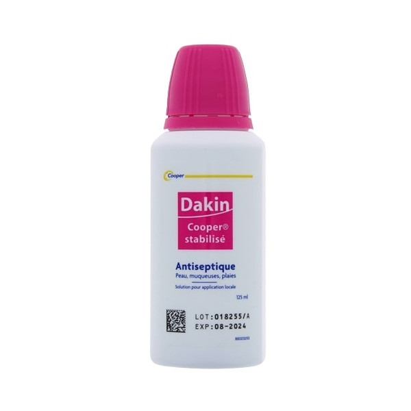 Dakin est une solution pour application locale indiquée pour l'antisepsie de la peau, des plaies et des muqueuses.