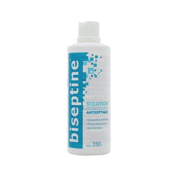 La solution antiseptique Biseptine est disponible en flacon de 250ml.