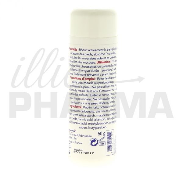 Pour assurer l'hygiène des pieds, les laboratoires Tradiphar ont conçu la poudre antitranspirante d'Entretien Dry Foot. Les actifs contenus dans cette poudre régularisent activement la sudation. Son action antitranspiration est renforcée, ce qui lui permet d'éviter les irritations et de diminuer les risques de prolifération microbienne. Sa formule unique absorbe l'humidité causée par la transpiration excessive. La poudre antitranspirante d'Entretien Dry foot possède également une propriété désodorisante à effet longue durée.