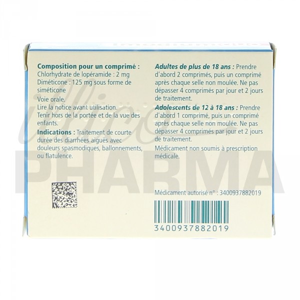Cet antidiarrhéique peut être obtenu sans ordonnance. Néanmoins, il ne doit pas être employé sans avis médical en cas d'insuffisance hépatique et chez les personnes infectées par le VIH. En l'absence d'amélioration après 2 jours de traitement, consultez votre médecin.