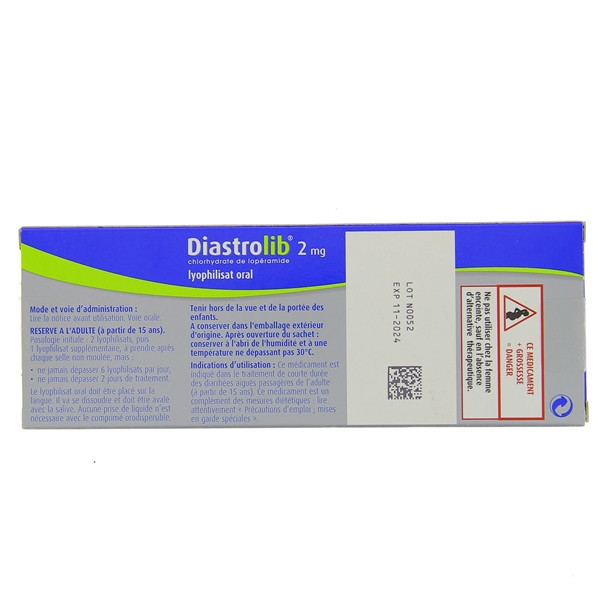 - Adulte et adolescent de plus de 15 ans : commencer par 2 lyophilisats, puis 1 lyophilisat supplémentaire après chaque selle liquide, sans dépasser 6 lyophilisats par jour et 2 jours de traitement ; au-delà, si les troubles persistent, consulter le médecin.