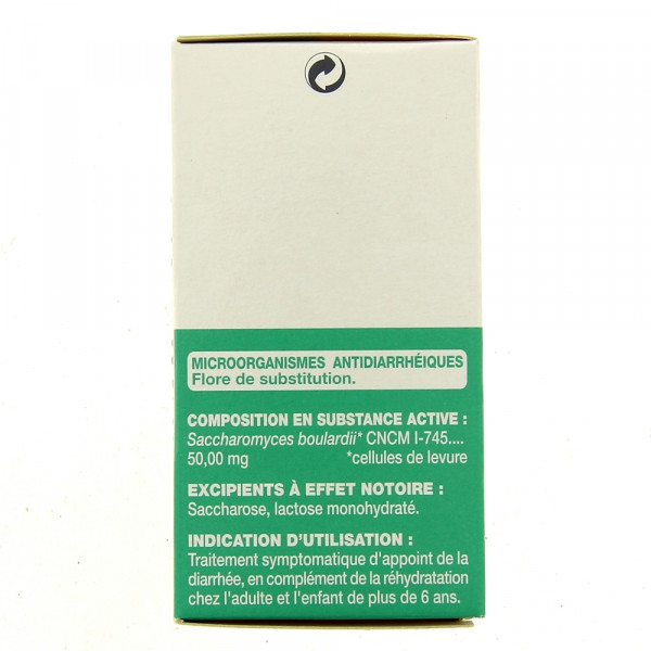 Ultra-levure (saccharomyces Bouardii) est disponible en boîte de 50 gélules.