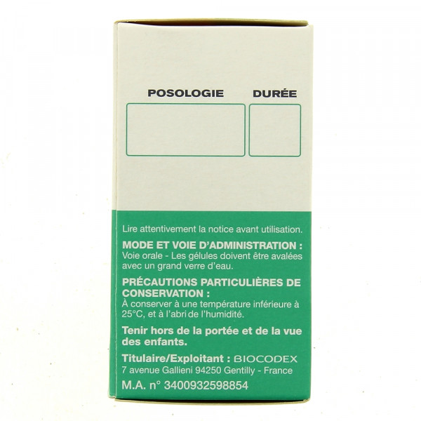 - Adulte et enfant de plus de 6 ans : 2 gélules à 50 mg, 2 fois par jour ou 1 gélule à 200 mg par jour.