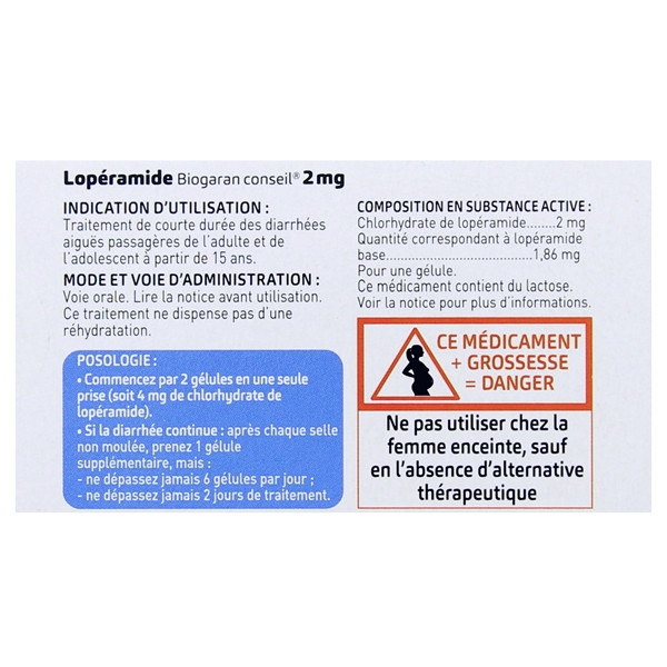 Cet antidiarrhéique peut être obtenu sans ordonnance. Néanmoins, il ne doit pas être employé sans avis médical en cas d'insuffisance hépatique et chez les personnes infectées par le VIH. En l'absence d'amélioration après 2 jours de traitement, consultez votre médecin.