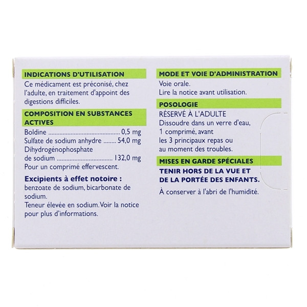 - Adulte : 1 comprimé avant les 3 principaux repas ou au moment des douleurs.