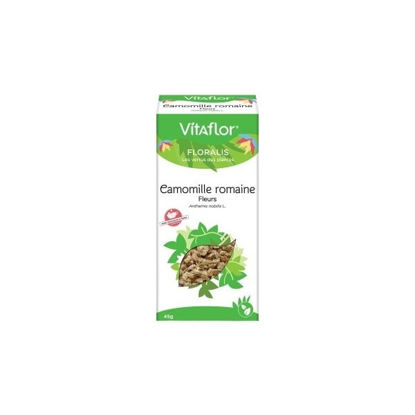 La tisane de Camomille romaine proposée par la marque Vitaflor permet une meilleure digestion. La camomille romaine permet principalement le soulagement et la prévention des flatulences, la lutte contre les spasmes intestinaux et la stimulation de la digestion.
