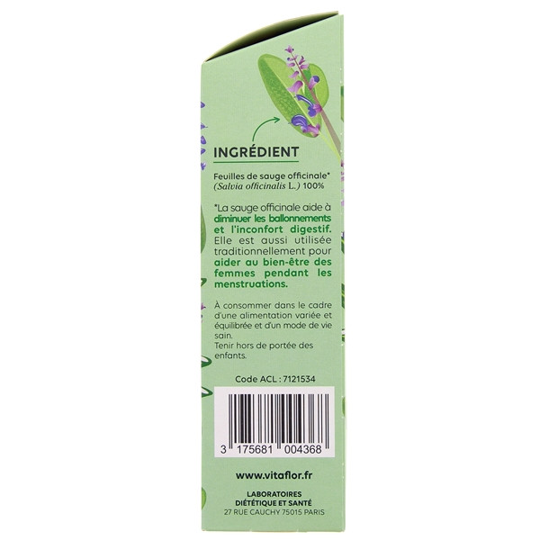 Grâce à des feuilles de sauge sélectionnées pour leurs vertus digestives, la tisane Sauge Officinale de Vitaflor est indiquée contre les troubles de la digestion.