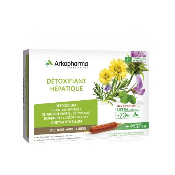 Le complément alimentaire Détoxifiant Hépatique Bio Arkofluides, élaboré par les laboratoires Arkopharma, est indiqué pour aider à détoxifier le foie grâce à l'action de ses composants.