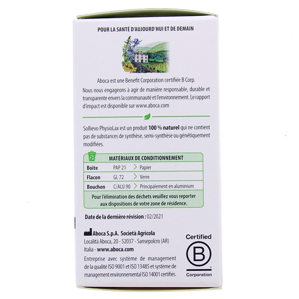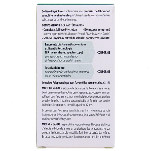 Sollievo PhysioLax est obtenu grâce à des processus de fabrication qui n’utilisent pas de solvants ou d’autres substances de synthèse chimique