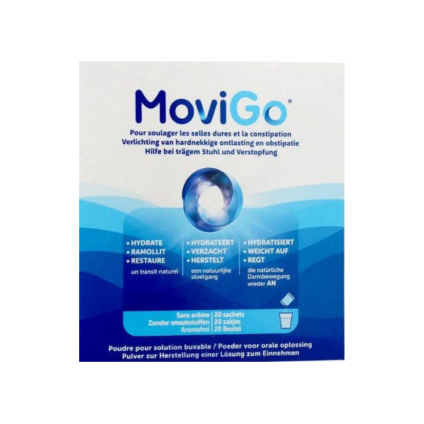MoviGo est une poudre pour solution buvable formulée à base de Macrogol 3350. Elle est indiquée pour soulager les selles dures et la constipation afin de restaurer un transit naturel. MoviGo peut être utilisé chez les adultes et les enfants dès 2 ans.