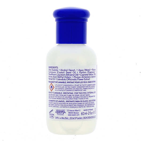 Les huiles de Ricin, de calendula et les Lipesters® de Soie contenus dans le dissolvant doux de la marque Ecrinal débarrassent efficacement les ongles de toutes traces de vernis.