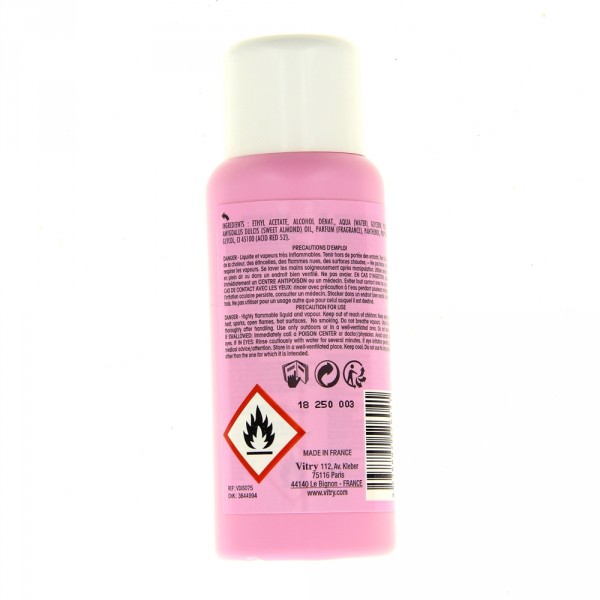 Ce dissolvant pour ongles permet d'enlever le vernis sans difficulté. Avec sa formule Extra Doux, le dissolvant Vitry ne contient pas d'acétone et est enrichi à l'huile d'amande douce.